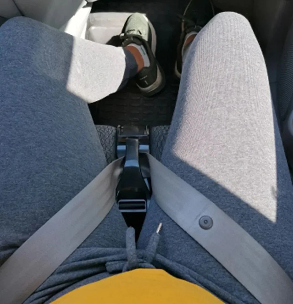 Achte darauf, dass der Gurt fest anliegt, aber nicht drückt. Dein Bauch bleibt frei und der Gurt sitzt stabil am Becken. So kannst du sicher und bequem Auto fahren – ohne Druck, ohne Risiko.